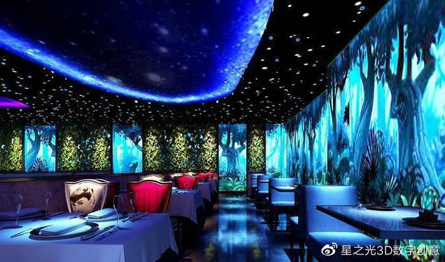 “全息餐廳”是最近幾年興起的一項新技術(shù),將全息膠片與投影機技術(shù)結合,然后將畫(huà)面中的內容進(jìn)行還原,形成全息影像,被稱(chēng)為“沉浸式”、“全息餐廳”、“三維全息沉浸式”、“3D全息餐廳”。
