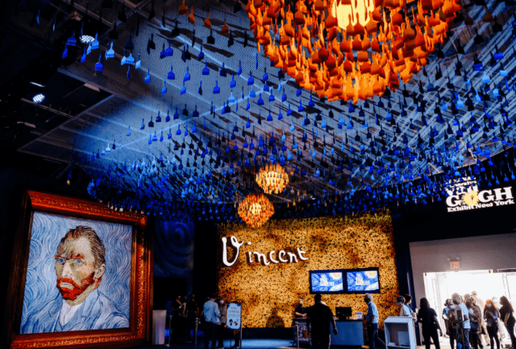 《梵高·身臨其境》通過(guò)紐約的50萬(wàn)立方英尺的投影將藝術(shù)家的杰作帶入生活,成為北美最受歡迎的體驗場(chǎng)景。