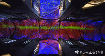 在大教堂的墻壁上,一張巨大的光網(wǎng)逐漸成型,隨后消失,變成了一個不斷變化的世界。