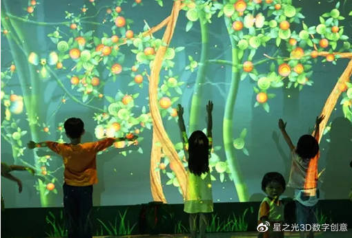該系統包括投影機、運動(dòng)捕捉系統、交互自定義軟件。兒童可以用投影設備和墻壁上的虛擬環(huán)境進(jìn)行互動(dòng)。在有畫(huà)面或怪獸的情況下,采用多點(diǎn)觸控技術(shù),讓小朋友們在游戲中共同玩耍,并將光影和真實(shí)的游戲場(chǎng)景相結合,為兒童創(chuàng )造一個(gè)充滿(mǎn)想象力的交互式世界。