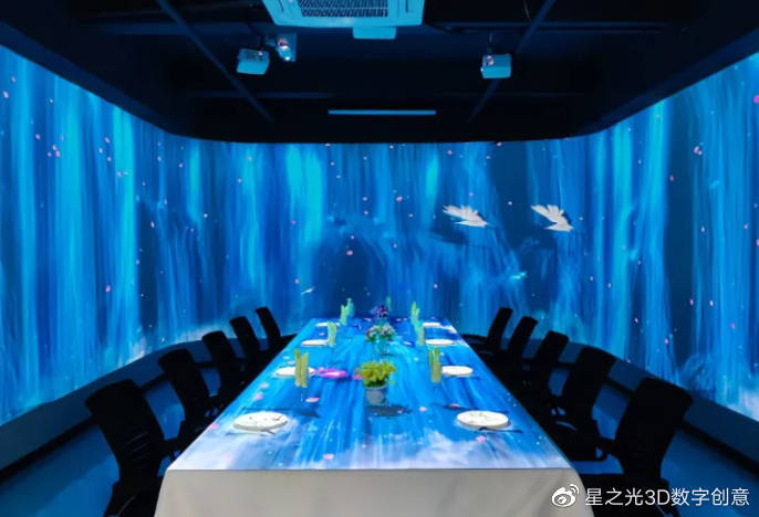 與傳統的用餐空間相比,沉浸式全息投影餐廳的視覺(jué)效果更加適合年輕人。全息餐廳通過(guò)墻面、地面、桌面等作為投影媒介,可以實(shí)現互動(dòng)、娛樂(lè )的結合,形成有趣的互動(dòng)游戲,提高用餐體驗。
