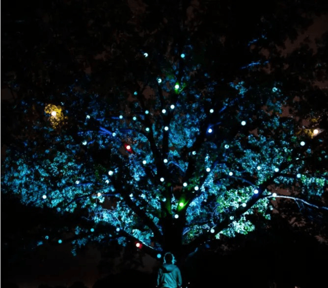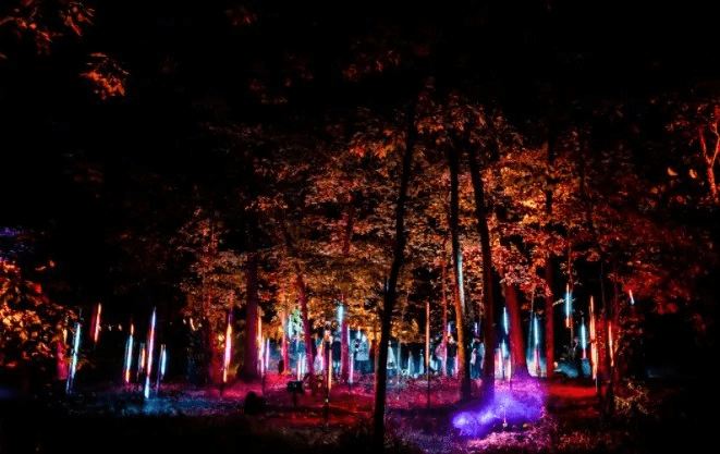 “北部森林之光”是由位于美國博物館森林?徑的燈光藝術(shù)裝置和聲?體驗的夜間游園的?系列項?組成的。