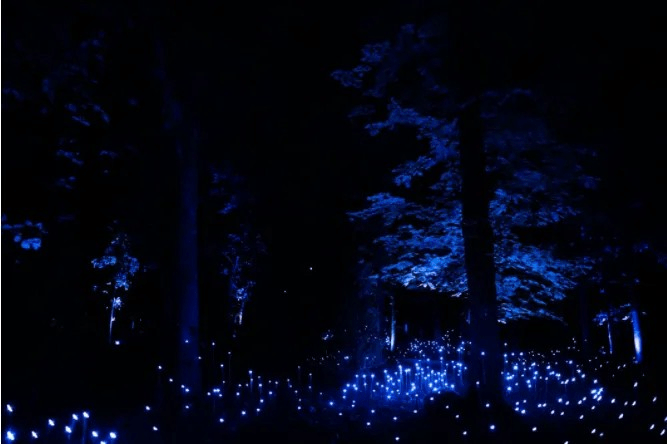 北部森林之光位于博物館地?森林?徑上的裝置。以奇妙的聲?設置和?然場(chǎng)景、豐富?彩?調,揭?森林的神秘之語(yǔ)。