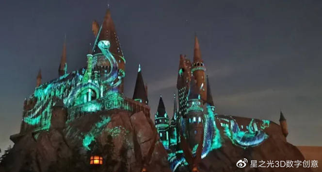 建筑投影運用在旅游景點(diǎn)、游樂(lè )園等地建設室外建筑中,既能吸引游客,又能刺激消費;
