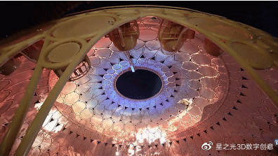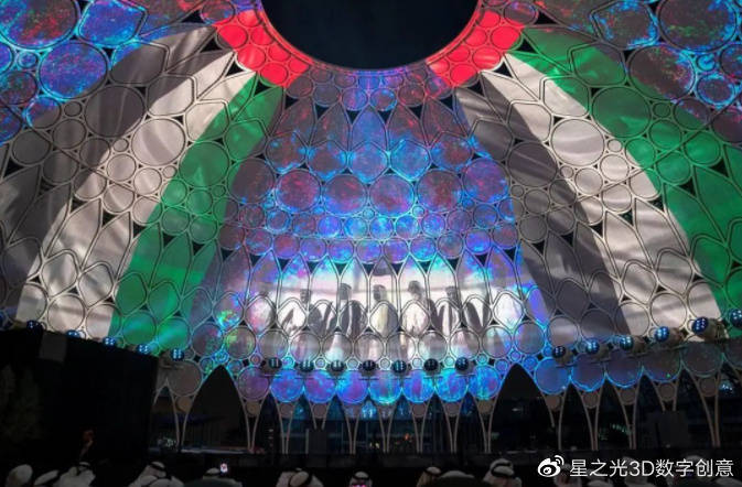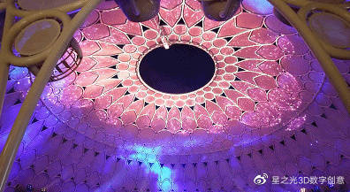該大樓的穹頂安裝了252臺投影機,形成一個(gè)360度的沉浸式投影機,讓觀(guān)眾在室內和室外都能看到,是全球最大的360°投影機。