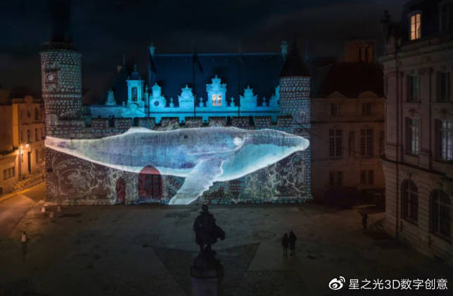 法國拉羅謝爾市政府大樓在六年后重新裝修后,將其改造成一幅由海洋圖像、天空、陸地和植物組成的建筑投影。風(fēng)門(mén)是羅馬風(fēng)格的教堂的一個(gè)重要組成部分,揚·恩吉瑪就以此為靈感,設計了一打的圖畫(huà)。